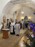 Рождество Господа Бога и Спаса нашего Иисуса ХристаВ ночь с субботы 6-го на воскресенье 7-го января на Рождество Господа Бога и Спаса нашего Иисуса Христа состоялась Божественная литургия. Было оглашено Рождественское послание Святейшего Патриарха Московского и всея Руси Кирилла архипастырям, пастырям, диаконам, монашествующим и всем верным чадам Русской Православной Церкви.